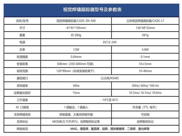 創(chuàng)想智控的視覺(jué)焊縫跟蹤器也分為兩款,也就是立體視覺(jué)焊縫跟蹤器CXZK-LT和視覺(jué)焊縫跟蹤器CXZK-AN-500,不同的型號(hào),特點(diǎn)和作用自然也不相同,下面就介紹兩款產(chǎn)品不同的特點(diǎn)。