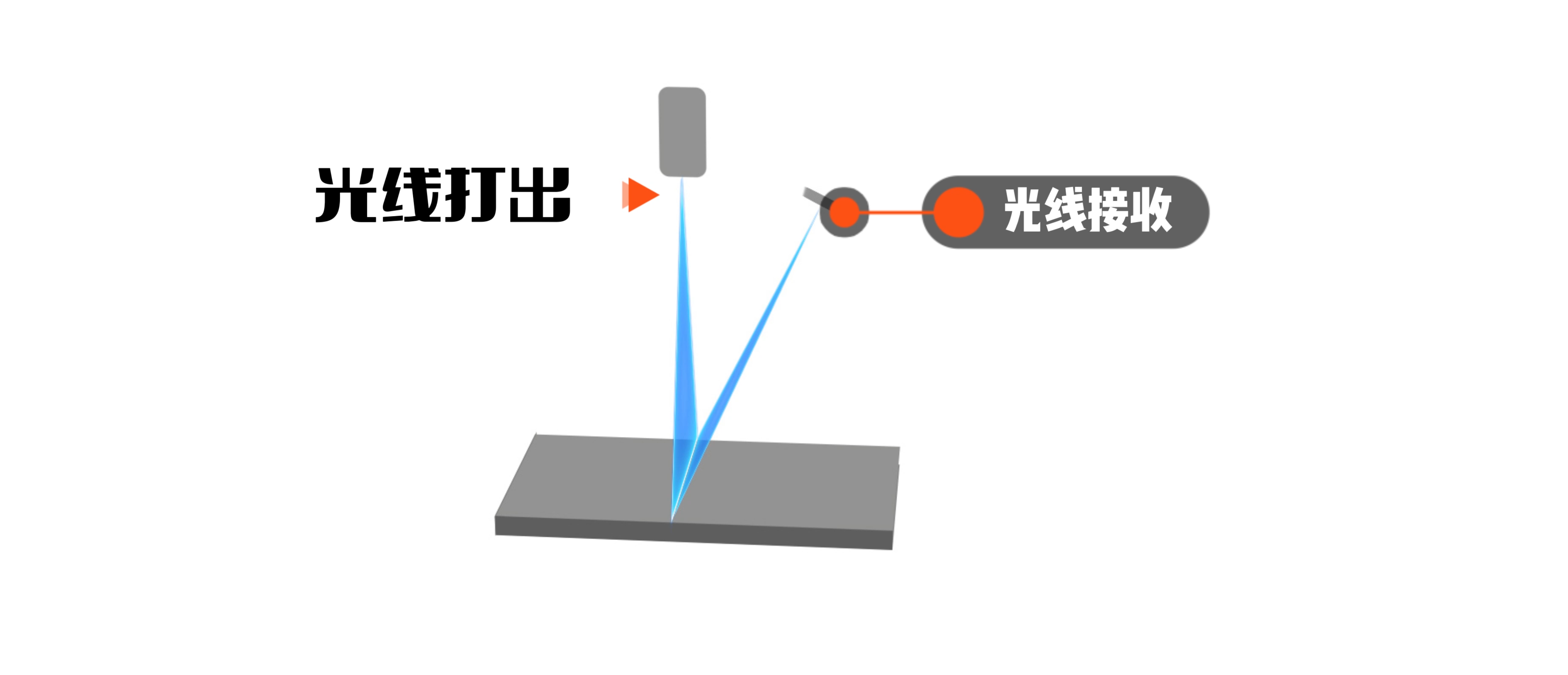 TOF測(cè)距相機(jī)原理是激光發(fā)射端發(fā)射的光線被被測(cè)物體反射后返回傳感器,內(nèi)置的計(jì)時(shí)器記錄其來(lái)回時(shí)間,通過(guò)速度與時(shí)間計(jì)算其距離。